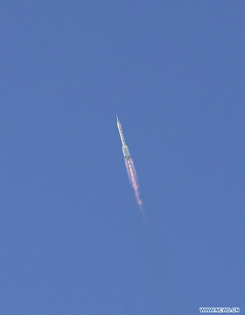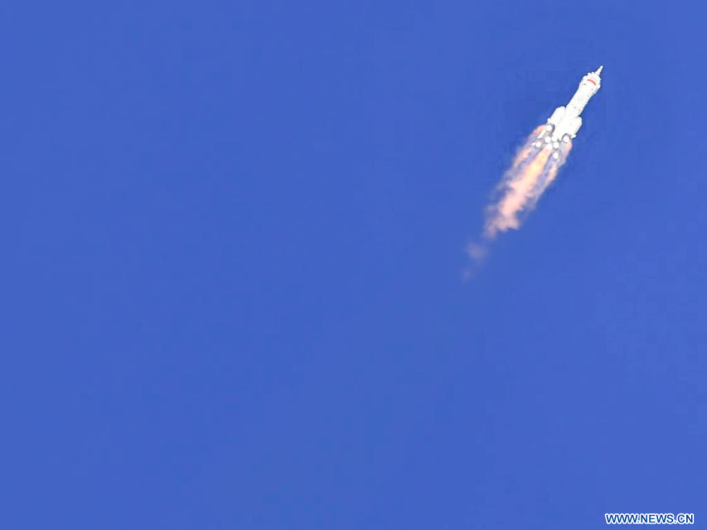 Le vaisseau spatial, monté sur une fusée porteuse Longue Marche-2F, a décollé jeudi à 11h14 (heure de Beijing) du Centre de lancement de satellites de Jiuquan, dans le nord-ouest de la Chine, selon l'Agence chinoise des vols spatiaux habités (China Manned Space Agency, CMSA).