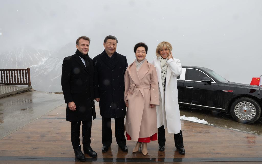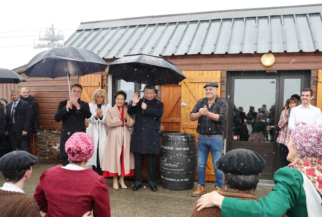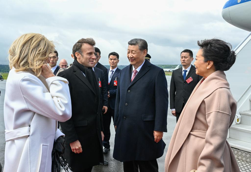 M. Xi a été accueilli par le président français Emmanuel Macron et son épouse, Brigitte Macron, à l'aéroport. Fin
