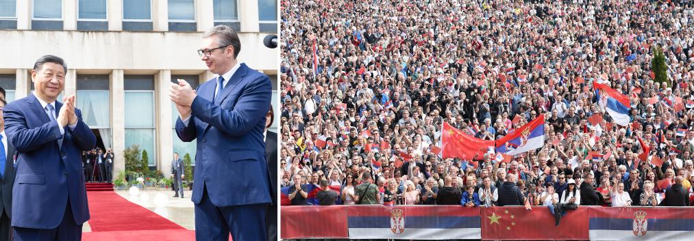 Avant leurs entretiens, M. Vucic a accompagné M. Xi sur le parvis du Palais de Serbie. Sur la place devant le palais, quelque 15.000 Serbes brandissaient des drapeaux chinois et serbes pour souhaiter la bienvenue à M. Xi. Le dirigeant chinois a salué la foule, qui a éclaté en applaudissements et en acclamations prolongés et jubilatoires.