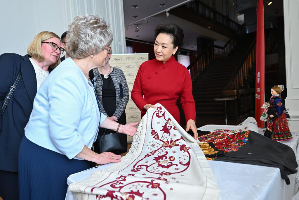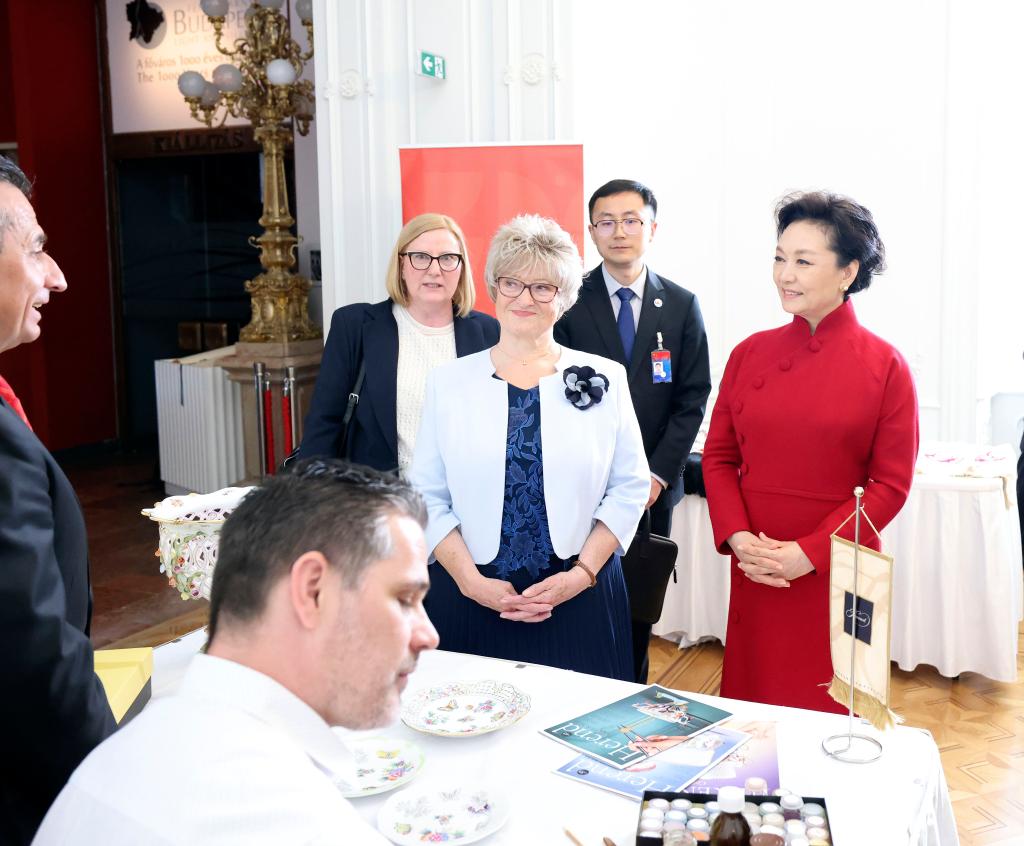 Mme Peng s'est dite impressionnée par l'exquise porcelaine hongroise et le superbe savoir-faire en matière de broderie.
