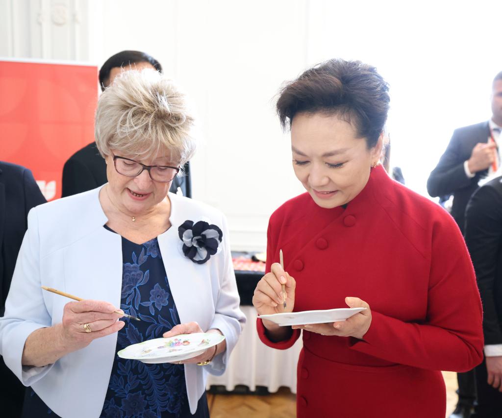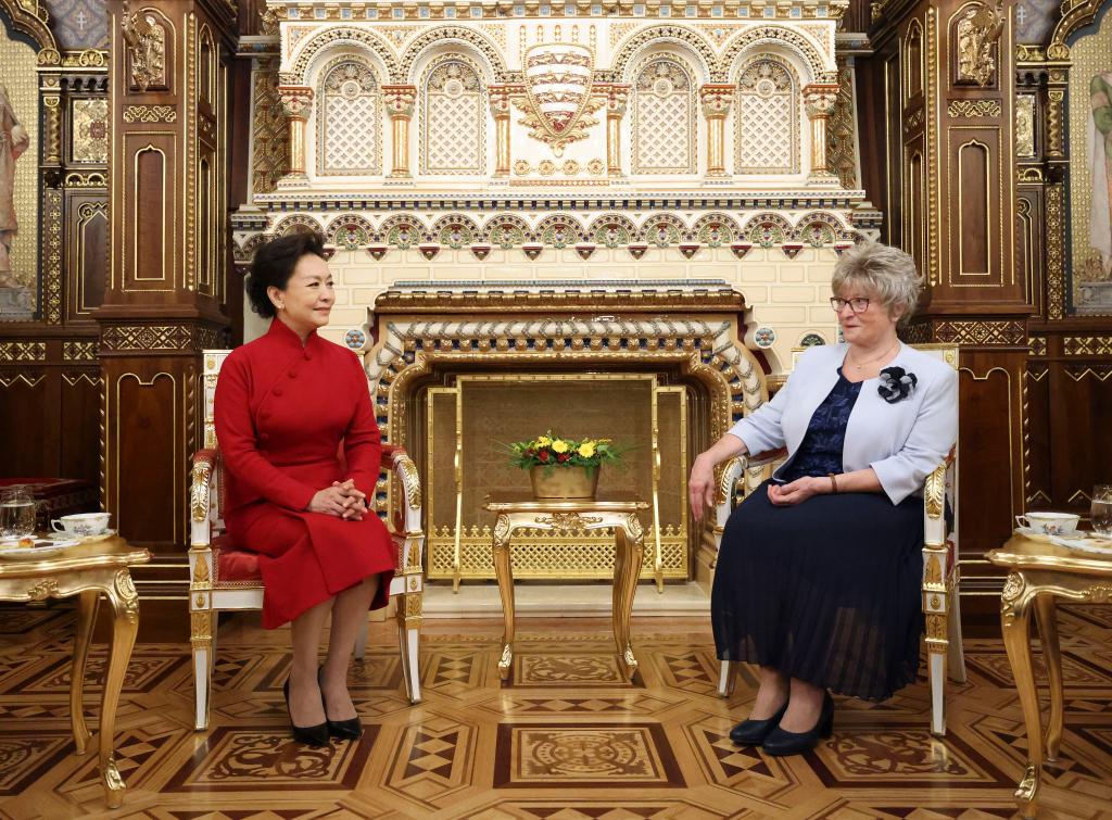 BUDAPEST, 9 mai (Xinhua) -- Peng Liyuan, l'épouse du président chinois Xi Jinping, a visité jeudi sur invitation le Château de Buda et a pris le thé avec Zsuzsanna Nagy, l'épouse du président hongrois Tamas Sulyok.