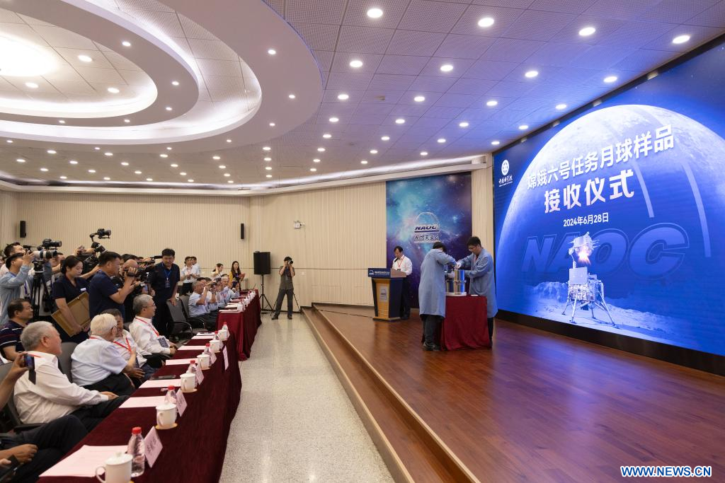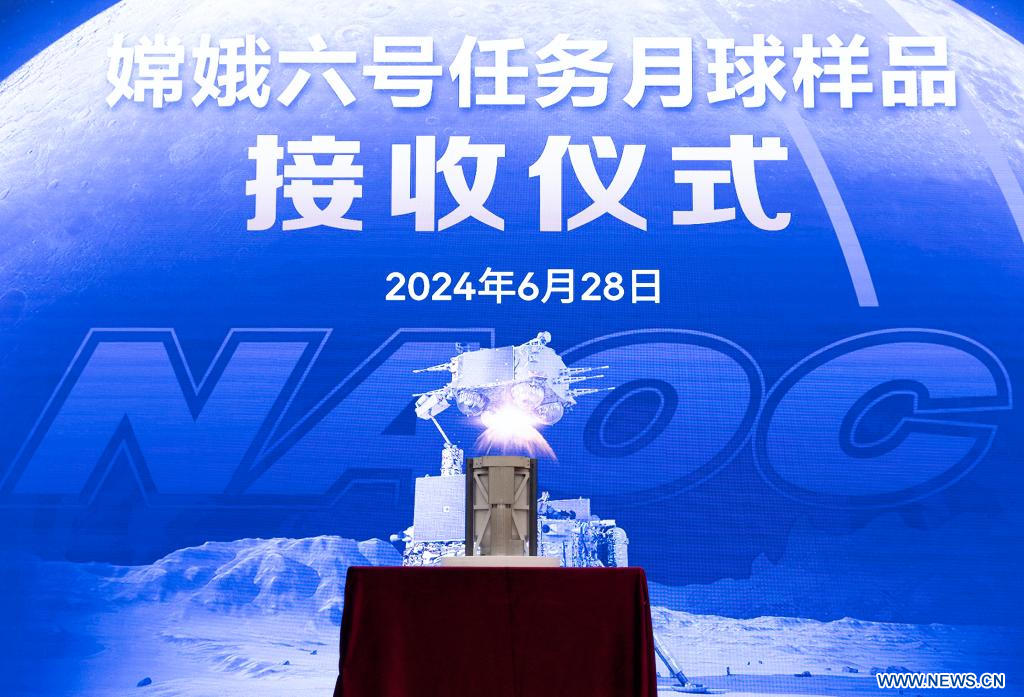 BEIJING, 28 juin (Xinhua) -- La mission chinoise Chang'e-6 a collecté 1.935,3 grammes d'échantillons de la face cachée de la Lune, a annoncé vendredi l'Administration spatiale nationale de Chine (China National Space Administration, CNSA).