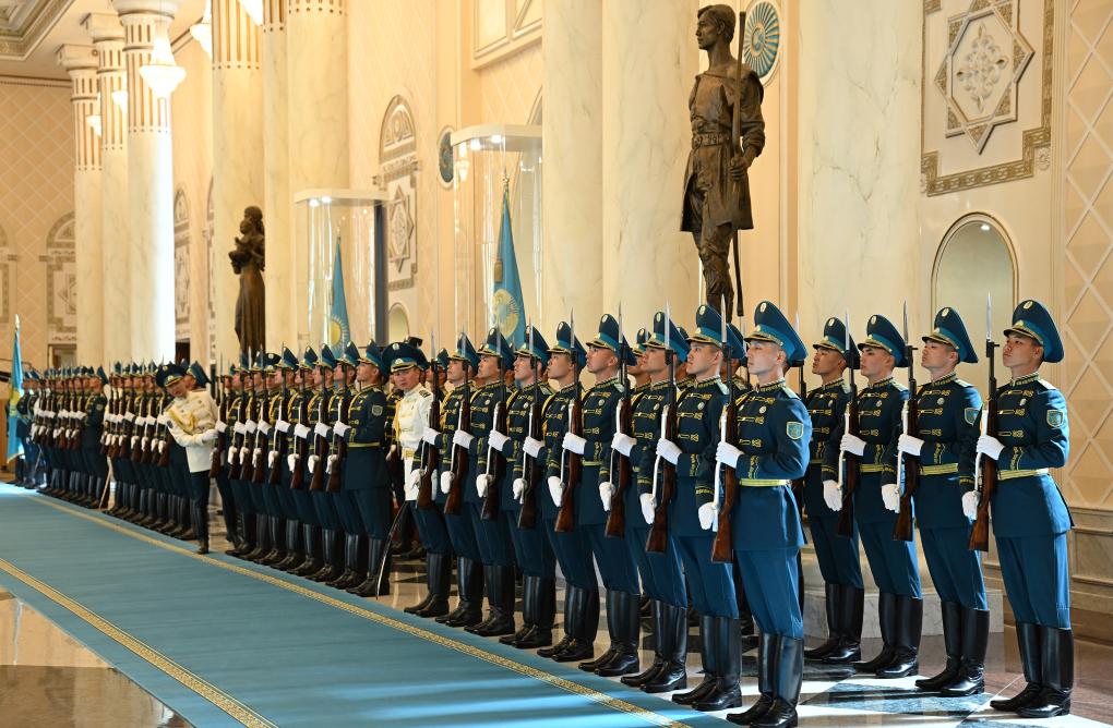 Trois chasseurs de l'armée de l'air kazakhe ont décollé pour escorter l'avion de M. Xi après son entrée dans l'espace aérien du pays. M. Tokaïev a organisé une grande cérémonie de bienvenue à l'aéroport. Fin