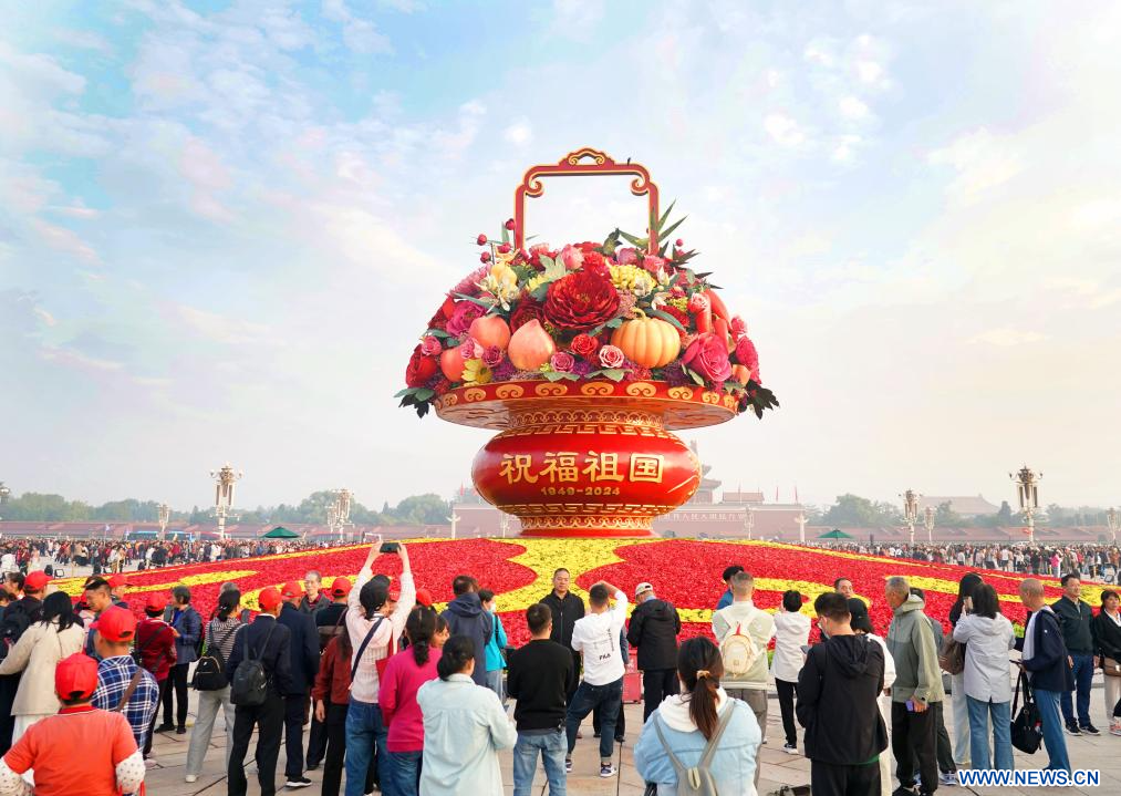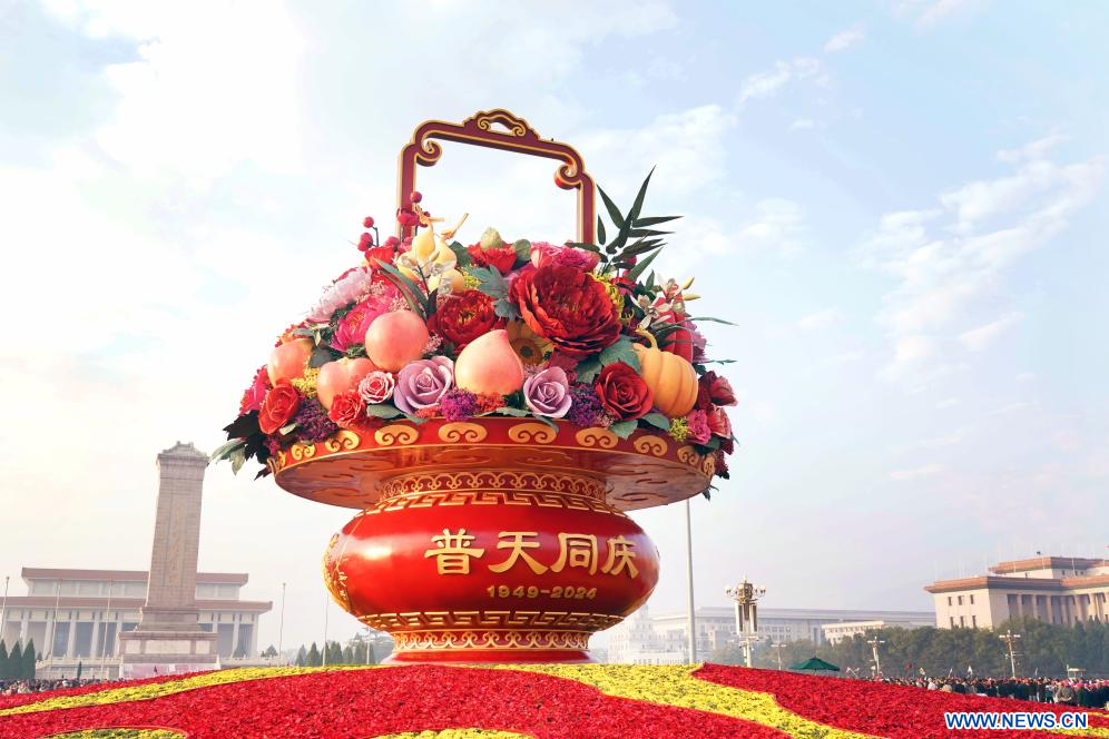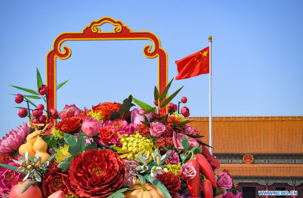 Un panier de fleurs de 18 mètres de haut a été installé sur la place Tian'anmen et dix parterres de fleurs de différents styles ont été mis en place le long de l'avenue Chang'an, selon Liu Mingxing, du Bureau municipal des forêts et des parcs de Beijing.