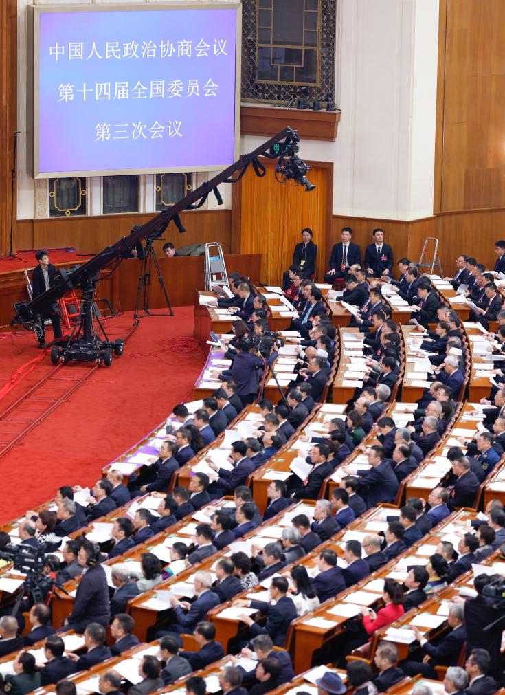 BEIJING, 9 mars (Xinhua) -- Le 14e Comité national de la Conférence consultative politique du peuple chinois (CCPPC), organe consultatif politique suprême du pays, a tenu dimanche sa troisième réunion plénière de la session annuelle en cours.
