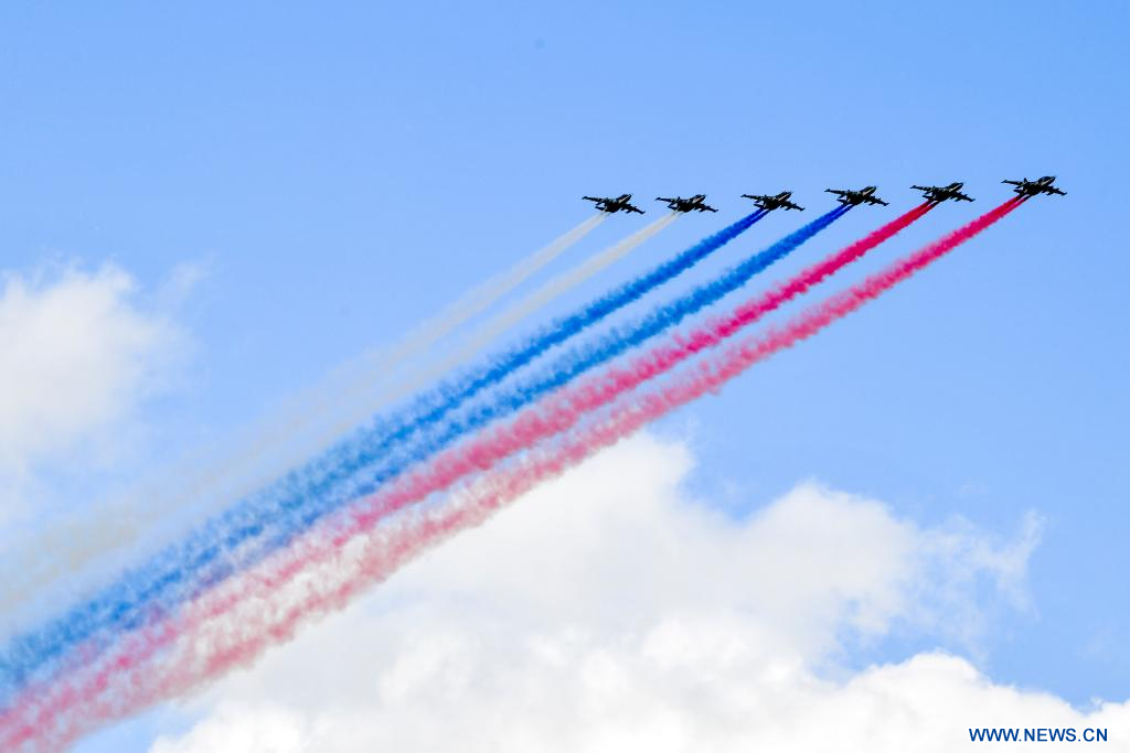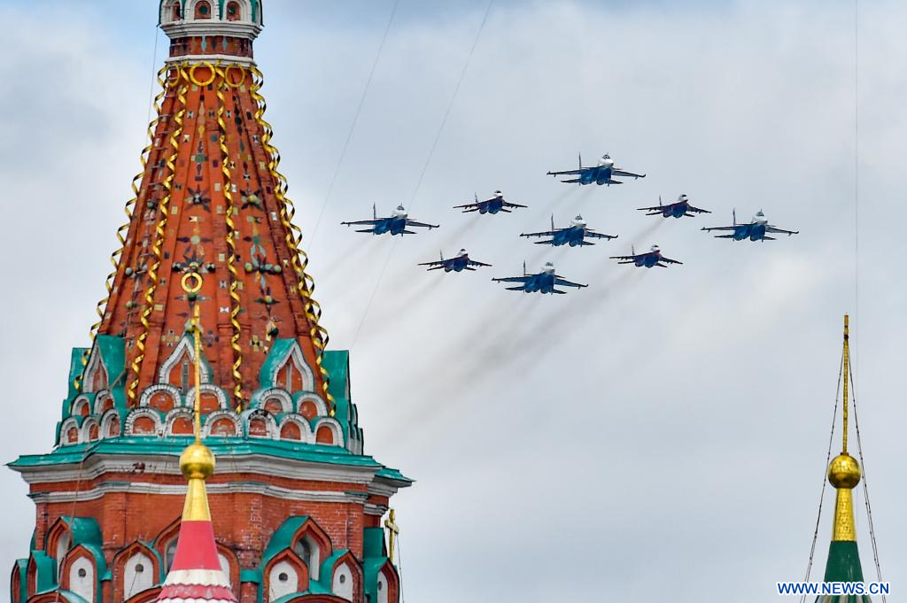 MOSCOU, 9 mai (Xinhua) -- La Russie a célébré vendredi le Jour de la Victoire en organisant une grande parade militaire sur la Place Rouge à Moscou, pour marquer le 80e anniversaire de la victoire de l'Union soviétique dans la Grande Guerre patriotique.