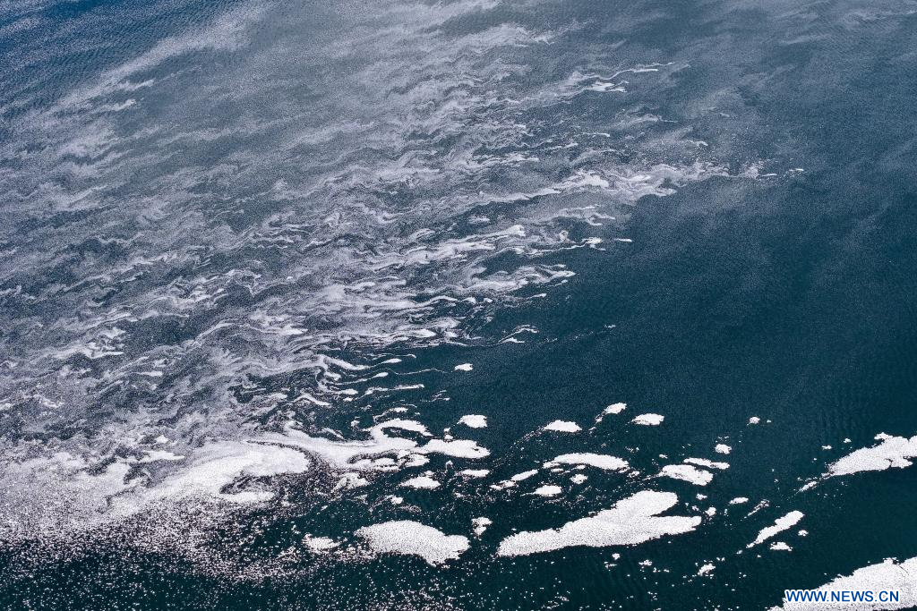 AKSAY, 17 novembre (Xinhua) -- Photo aérienne de la surface gelée du lac Dasugan, situé dans le district autonome kazakh d'Aksay, à Jiuquan, dans la province chinoise du Gansu (nord-ouest), le 16 novembre 2025.