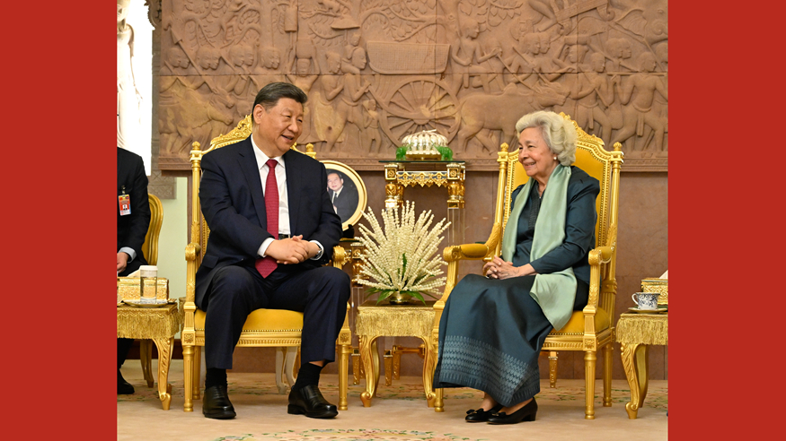 Xi salue la reine mère Monineath en tant que promotrice de l'amitié Chine-Cambodge
